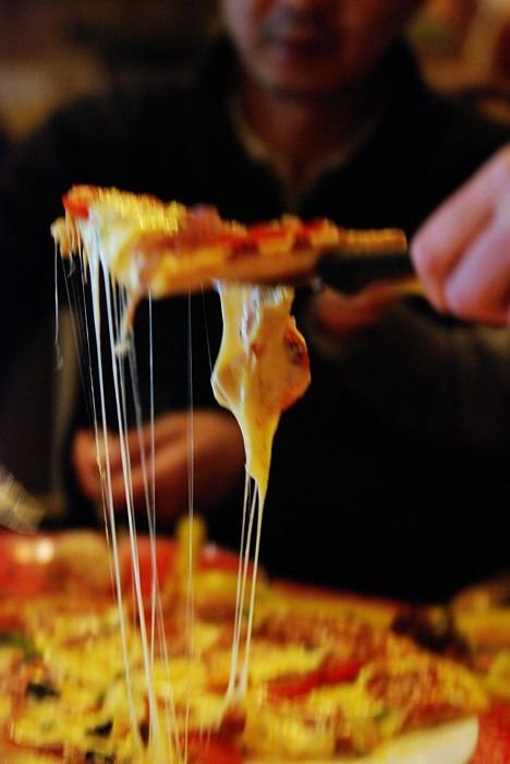芝士拉出的丝连绵不断