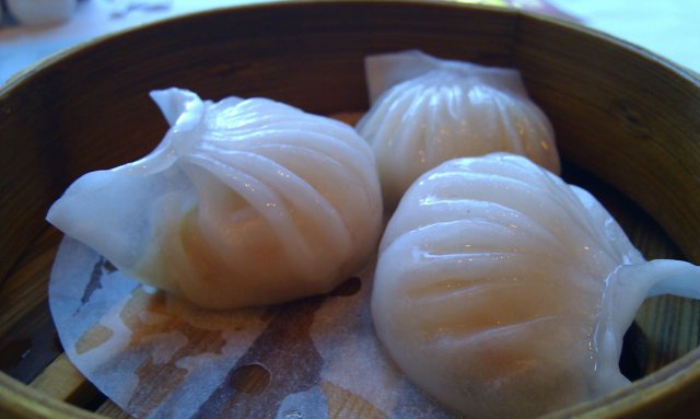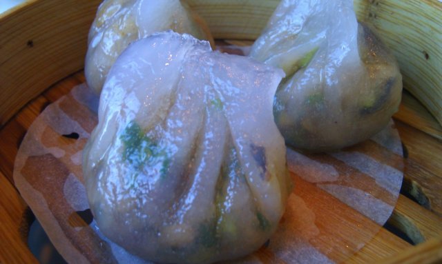 虾饺.挺好吃.皮很薄.整体很Q.虽不是很饱满.但馅儿确实是虾而不是一茶一坐自助虾饺的那种虾滑..日子比较久远..隐约记得荸荠不少.. 咸鲜型..虾味儿比较淡薄 但还是带甜味儿的.虾饺皮非常爱干.建议现点快吞.比较另类的是他家的虾饺一股火腿肠的味道..