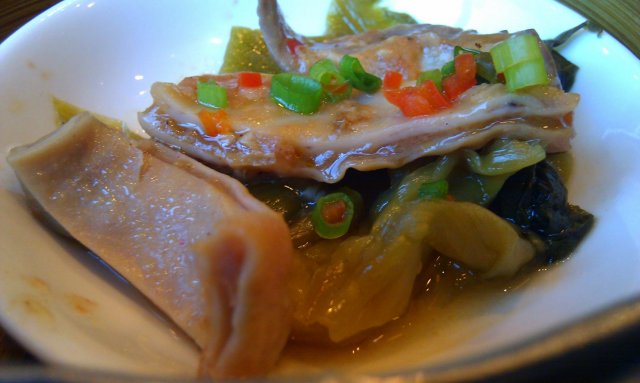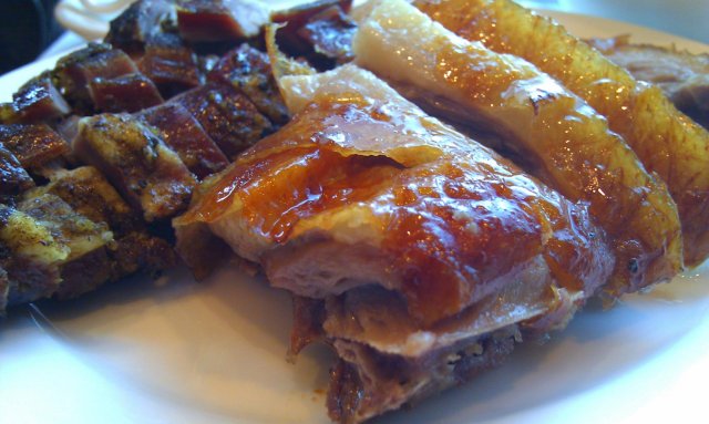 烧鸭 很肥 味道特一般 如果一个烧鸭烧的没有鸡好吃 作为鸭子的你是不是应该自卑下 起初我以为是烤鸭 吃上才知道啊 是有咸淡的 得亏我没装13的去要面酱 但酸梅酱我也没要.哈哈