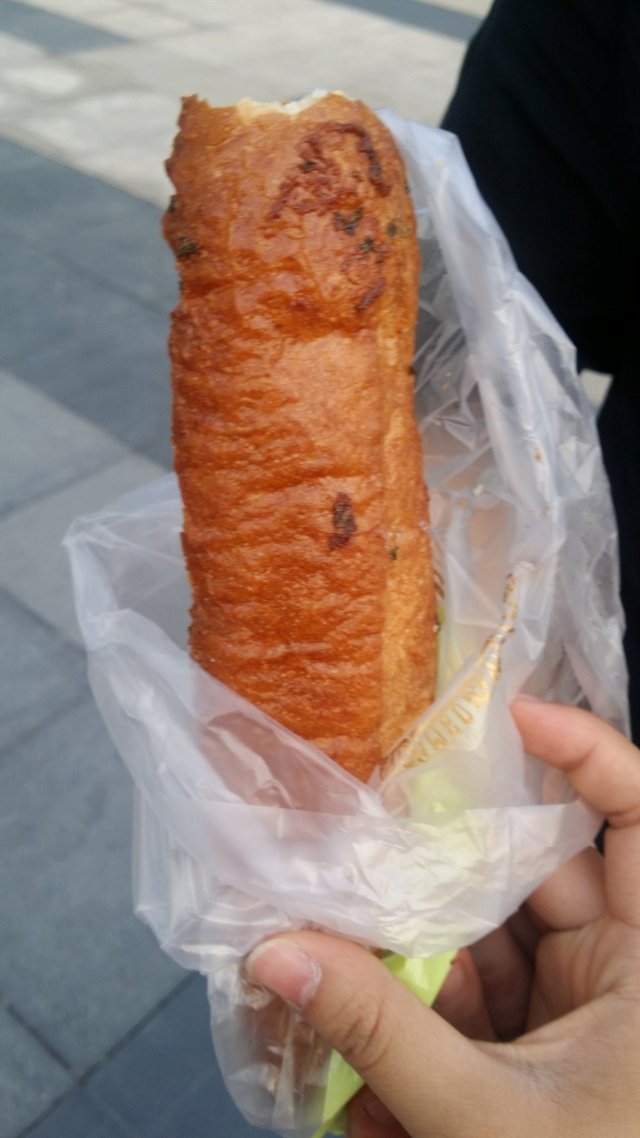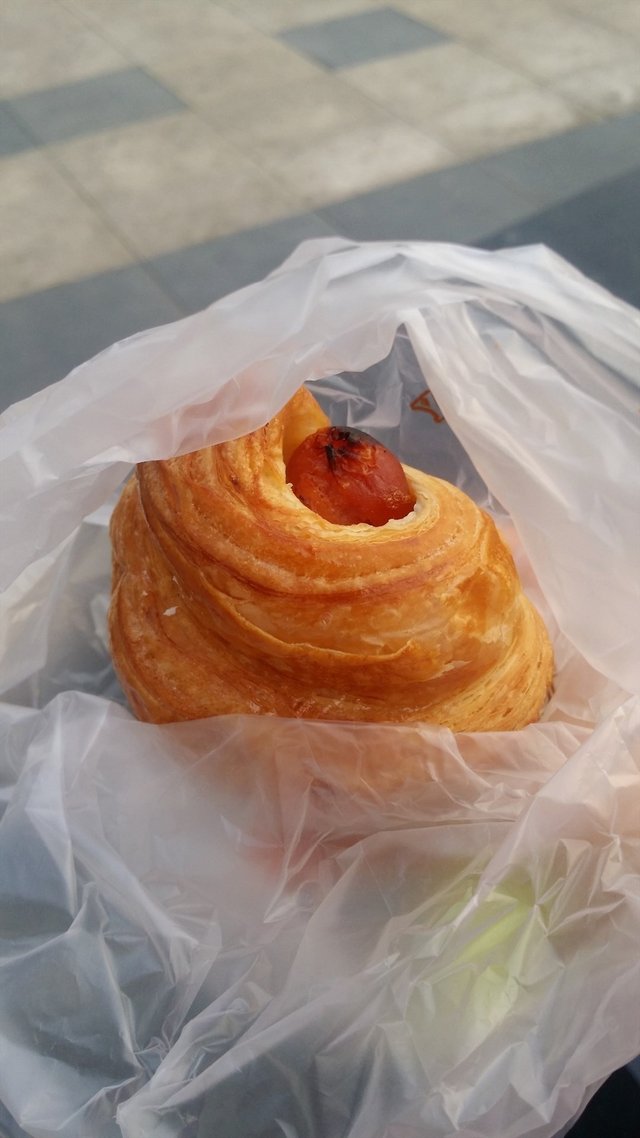 还有一款是香肠面包,挺普通的,里面有跟香肠,一般面包店都有吧。