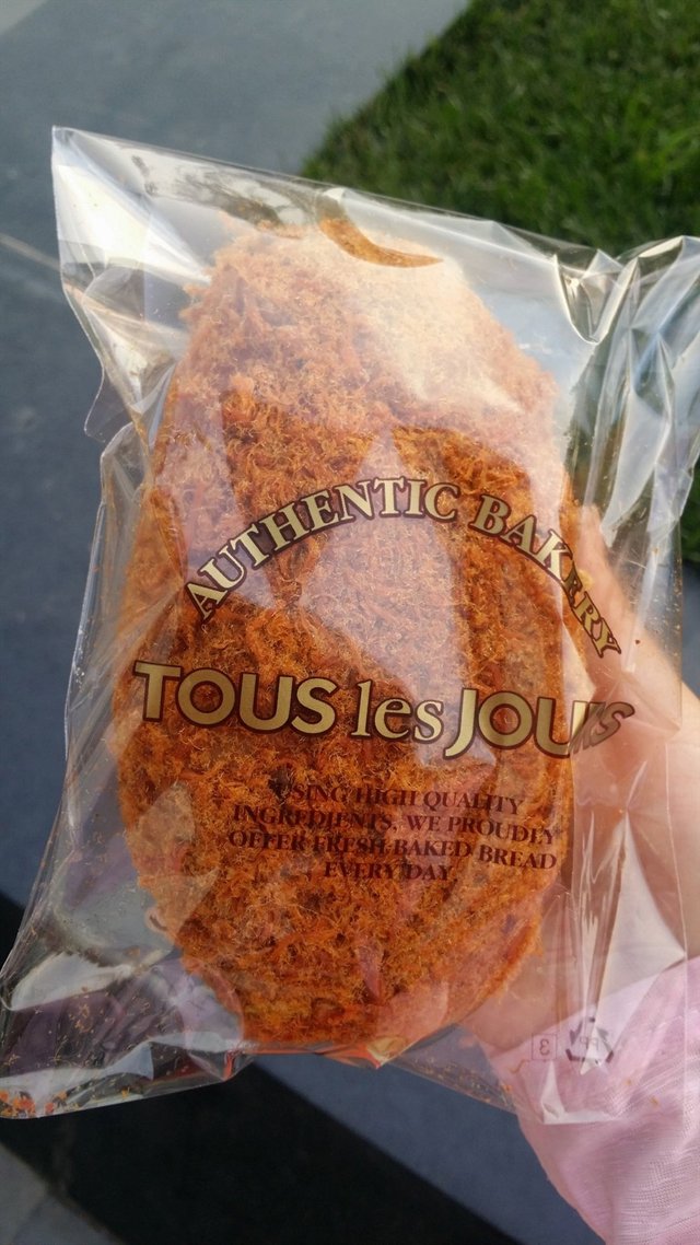 其次,是一款肉松面包,口感松软,我竟然吃出了鱼的味道,肉松很多,很软,但很辣,里面应该是加入的千岛酱,味道不错。