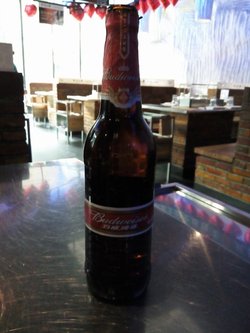 经典百威啤酒(¥9.00):要的冰的,结果服务员拿来一瓶问我这个温度行吗,这时我们已经守着热碳坐了一会了,我一摸就皱着眉头和服务员说,这不就是常温的吗。她又去换了一瓶,回来继续问我,好歹比刚才摸着凉了点,我问她还有更凉点的吗,她说没了!我们也只好将就了!