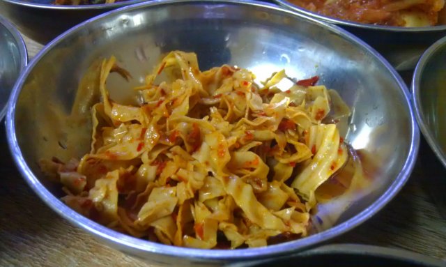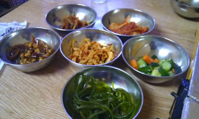餐前几小碟小菜 除了万能的萝卜干和比pankoo釜山新鲜的海带之外 其他都难吃