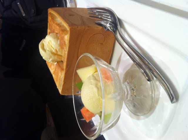 冰激凌蜂蜜面包是绝对的值得一尝的美味 比港丽神马的要好吃的多 面包刚烤出来的外皮酥脆无比 香草味的冰激凌 奶香浓郁 绝对是绝配