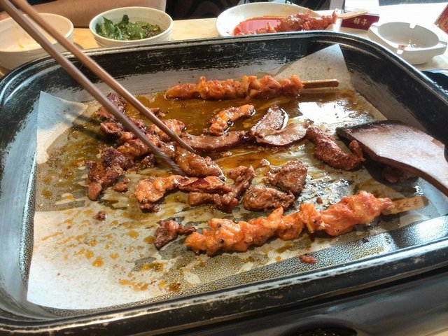 值得一提的是,这里居然不发围脖和袖套.油到处乱溅,吃得一点都不开心,经常被油烫到.要不是味道还不错,估计就是一次彻底不开心的自助烤肉了.