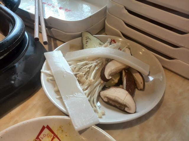 梅肉.五花肉他们是一碟两张,放在冰柜里的.冰柜旁边还有冰欺凌.饮料稍微有点淡.冰淇淋没有吃,因为不知道怎么取.酱料是自助的,男朋友不喜欢韩国辣酱.所以他吃的是火锅那种底料.