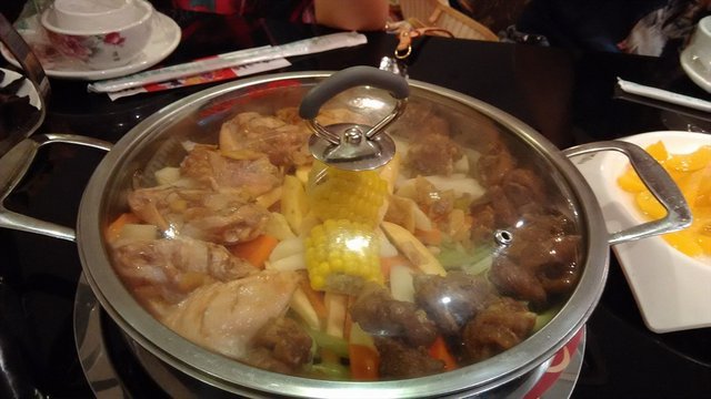 味道真心很赞 肉类很厚但是很入味 鸡翅肉很烂 是6个,非常香, 排骨挺小 也不多 排骨骨头大 .味道挺浓郁的 颜色深 好下饭 喜欢吃里面的蔬菜 尤其是玉米 特别嫩 而且味道很浓 ~ 切的小小的 很得吃