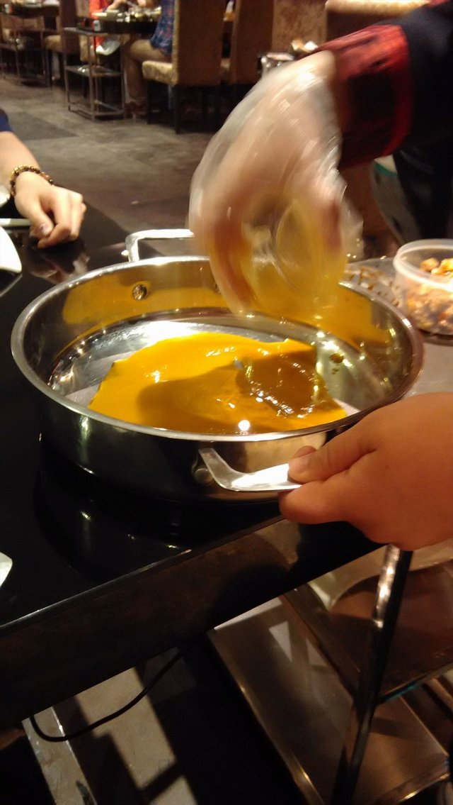打开盖的一瞬间 那味道。。太赞了。。 老板亲自过来用神奇的汤匙来帮我们搅拌~~~下面的成色 真心很好 搅拌了几下 就可以开动了~~~ 因为等了挺久 饿极了 就没有照相