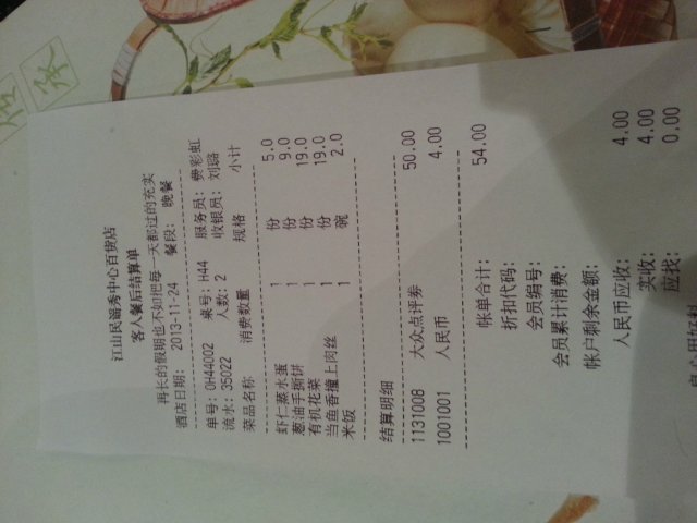 很实惠 茉莉清茶等級32013-12-0213 浏览 关注 最近江山在做活动,大众点评网21元团价值50元的代金券一张 此处地址很好,在中心百货八楼,生意特别好,里面的人都坐满了啊 在附近逛街,正好去那儿吃个饭,不得不说,江山的服务真的很不错 我们二个人,点了一碗米饭, 一份手撕饼,9元,很薄但是油不多,旁边的酱特别好吃,推荐!一碗虾仁蒸蛋,5元,鸡蛋蒸的刚刚好,很嫩干锅花菜 19元,微辣,但是花菜的甜味透出来了,味道很正,很好吃,份量也足鱼香肉丝 19元,一大盘,份量很足,微辣,酸甜可口,价格实惠,推荐!合计,54元,实际付款25元,这餐吃的很饱,真的很划算。而且味道特别不错。推荐!以上食记乃用户个人意见 , 并不代表OpenRice之观点。赞好分享很实惠 江山民谣饮食 https://s.openrice.com/KtbT1G0KiG800检举 张贴 评分4味道4环境4服务4卫生5抵食用餐日期2013-11-24人均消费¥30