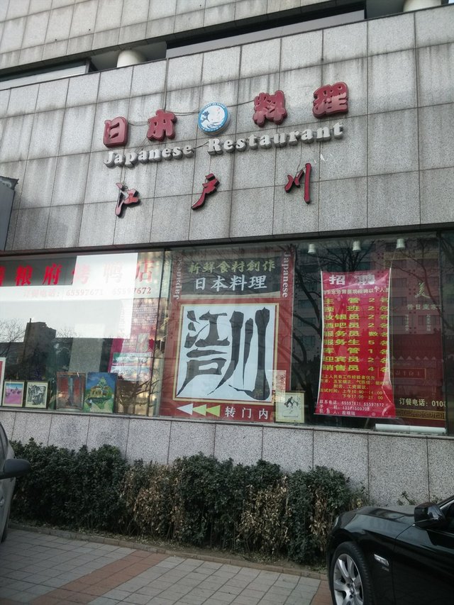 我叔叔请我们仨去吃的这家店,其实本来没有团购,因为叔叔掏钱不好意思我来团购,这家店5号线到灯市口出A口往南500米走到路口往西是金鱼胡同,找到3号有个和平宾馆,在一层的东侧。里面挺大的,还有楼上,我们四个人坐在了二层,从楼上俯视下面感觉不错,服务员态度也很不错,挺热情的,而且当时还主动告知有团购的代金券,100元卖79还挺好的,叔叔立马团购了几张(叔叔买的挺快的,看来是懂团购的)。这家店是单点的,我们四个人点了3种刺身拼盘、烤鲭鱼、相煎银鳕鱼、鳗鱼饭、铁板鹅肝、什锦天妇罗、炸鱿鱼须、烤三文鱼头、金枪鱼寿司、三文鱼寿司、关东煮、芝士焗大虾、蒜蓉扇贝、蒜蓉生蚝、铁板牛肉粒、松茸汤、清酒和咖喱饭。刺身,要的3种的拼盘,有三文鱼、红金枪鱼和加吉鱼,我们要了2份,每种3片,不够分的,所以要了2份,切的片挺大的,也挺厚的,新鲜度很不错,口感很软嫩,3种味道都很棒。清酒,松竹梅牌子的,味道很不错。寿司,要了三文鱼和红金枪鱼的,都很好吃,下面的米饭软硬度挺好,也挺香的,不是那种很干硬的,上面的鱼肉切的还算厚,也挺新鲜。炸鱿鱼须,配的沙拉酱,一份还比较多,炸的也还算酥脆。烤鲭鱼,配了白萝卜泥和柠檬,柠檬挤在鱼上去腥,鱼挺大一条,厚厚的,肉很鲜美,烤得外焦里嫩,外皮脆脆的,里面鱼肉很嫩。烤三文鱼头,个头还挺大的,同样挤上柠檬,三文鱼头还挺新鲜的,鱼眼睛特别软嫩,鱼脑软软的很爽滑,鱼肉也很鲜美,咸度还可以。煎鳕鱼,挺厚的,属于铁板的,鱼肉很嫩,没有鱼刺,不算咸。关东煮,有丸子、白萝卜、瑶柱棒、鸡蛋、肠等等,还不错的味道,热乎乎的挺暖胃。芝士焗大虾,很大一只,上面满满的都是芝士,很香,虾是劈开两半儿,肉挺弹牙的。铁板鹅肝,一大块鹅肝,下面垫着面包,是吸油的,也最后也可以吃掉,鹅肝很鲜嫩,口感软软的。蒜蓉扇贝,扇贝肉很大,蒜蓉也挺多的,应该是起到去腥的作用吧。蒜蓉生蚝,个头很大,肉也一大块,软软嫩嫩的肉,单独要了一块柠檬挤上去了,提鲜。什锦天妇罗,里面有大虾、茄子、胡萝卜、红薯等等,大虾个头很大很长也很酥脆,蘸着料去油腻很棒,蔬菜的也很好吃。松茸汤,里面有些蘑菇,味道挺好,很浓郁的鲜美味。鳗鱼饭,上面一大长块儿的鳗鱼,很鲜美,腥味不大,特别软嫩,拌着下面的饭吃很美味。咖喱饭,好像里面有点牛肉吧,挺浓郁的咖喱味,牛肉也挺嫩的,还有胡萝卜和土豆,都软软的,拌饭好吃。