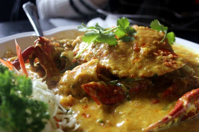 咖喱蟹味道也不错,蟹黄多多。如果把蟹壳弄碎一点应该会更方便吃吧