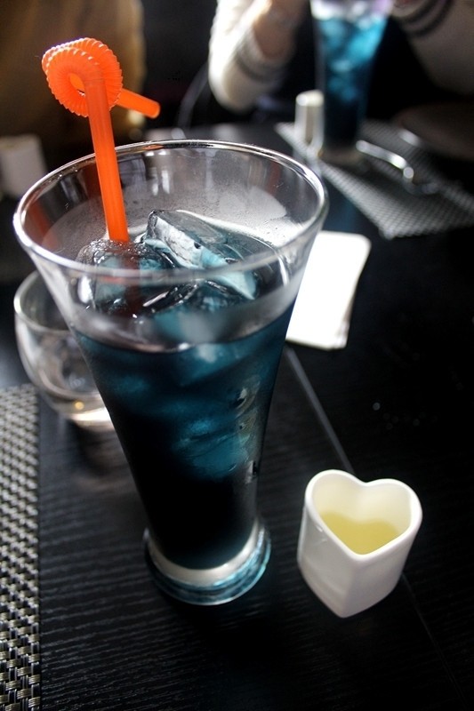 还有叫泰炯的饮料,神奇的可以从蓝色变成紫色。口感也蛮清爽,据说是泰国的某种花朵,紫色蓝色都很适合女孩子呐。