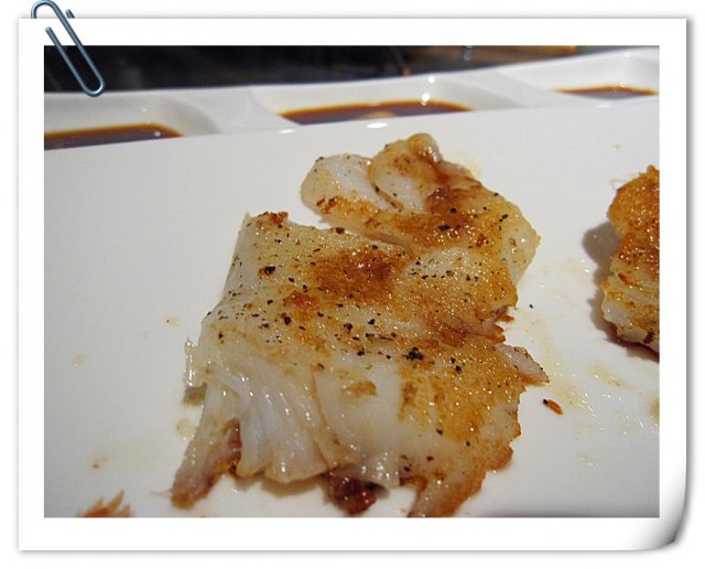 上完鱼生,厨师就闪亮登场啦。上场了简单说了句你好,再征求了一下我们要的口味,就开始工作啦。手法熟练,现场为我们铁板的,我们能第一时间吃到美味,还是不错滴。
