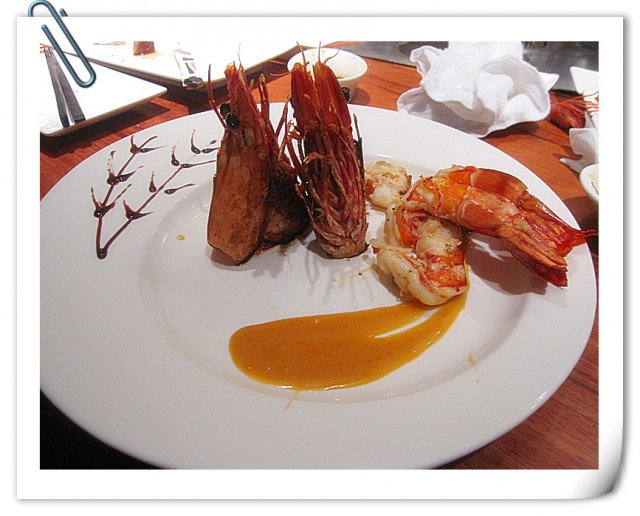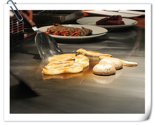 松茸那天没了,厨师就拿的另外两种菌类代替的。味道凑合吧,铁板的蘑菇水分流失很多,锁吃起来有点硬呢。