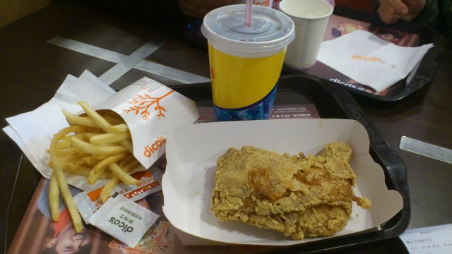 要了鸡腿套餐,鸡腿真心好吃啊,那个鸡腿好大一个,比豪大大鸡排都大,鸡皮特别的脆,炸得香脆无比