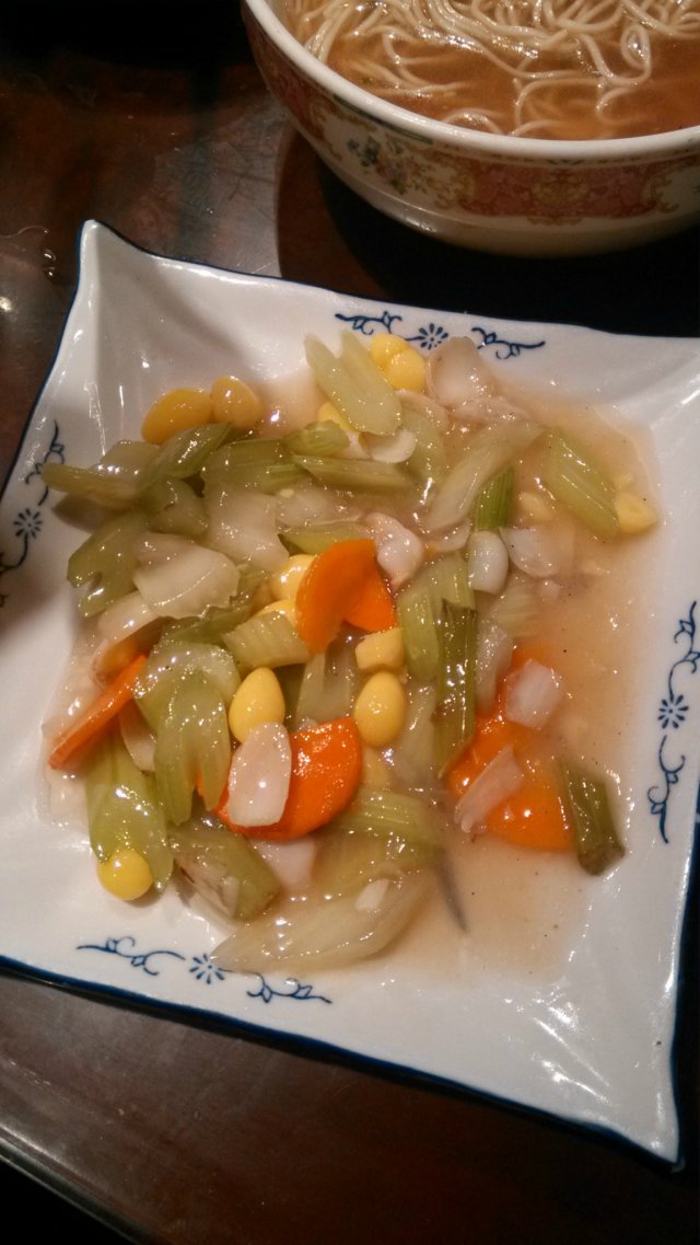 酱萝卜——萝卜切片但不切断,有点蓑衣黄瓜的感觉,然后切成大块,但吃起来有点不太便于入口,而且腌得不太好,没有去掉萝卜的苦味,因此会影响整个寀的吃口,不太喜欢~~~