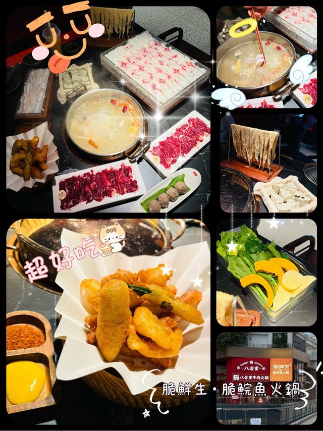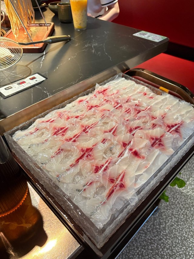 以大氣的紅黑的裝修營造出舒適的用餐氛圍。落座後,服務員熱情推薦招牌菜品,一旁不停幫我們燙食物,服務態度令人滿意!如果覺得食魚未夠滿足,還可以去八合里落單,在脆鮮生享用,今次真是大魚大肉啦!哈哈!