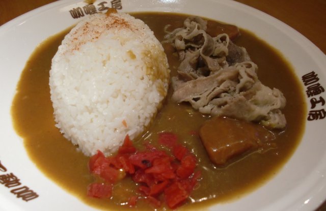 三种饭都差不多。饭一律上面洒了辣椒粉,一颗颗的,有些嚼劲,还行;咖喱汁最令人失望,有点偏咸和辣。看介绍说全是从日本进口的。一点也不香。不如泰式咖喱好吃;倒是配的红色的酸菜不错,酸甜适中,脆脆的;肥牛是日式料理的甜味,中规中矩,量太少;炸猪排外皮还行,较酥脆,但肉没什么味道,有点难嚼;茄子不错,切成大圆片,用油炸过,外皮很酥,里面很软,可惜量太少。