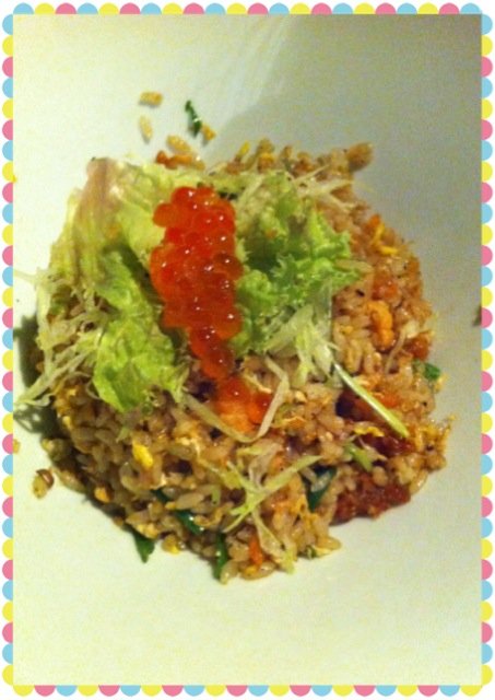 还点了个三文鱼炒饭 热的时候还可以 稍微冷点就有点腥了