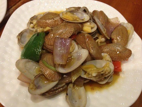 豉椒炒花甲(1份,价值32元)这个肉质有点老,贝壳是刀劈开来的很奇怪的做法。