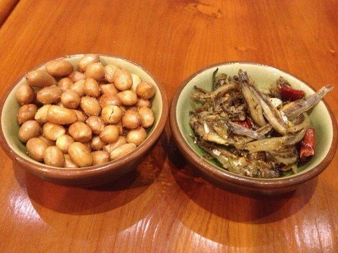 赠送餐前小食2份:奶爸喜欢花生,辣妈喜欢小鱼。各取所需,(*^__^*)
