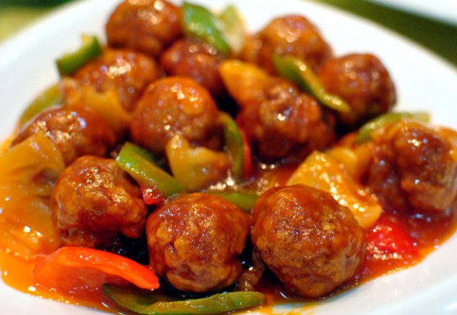 菠萝古老肉:这道菜也算是上海菜里面的代表吧,没有浓油,但是赤“酱”,当然,这个“酱”是番茄酱的“酱”,O(∩_∩)O~。番茄酱的酸和菠萝的酸混搭一起,很是开胃。不过这肉是有点老,真的是古“老”肉啊,呵呵~