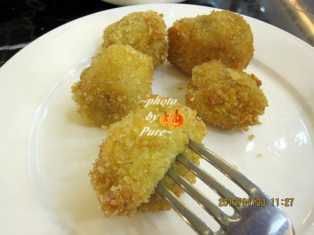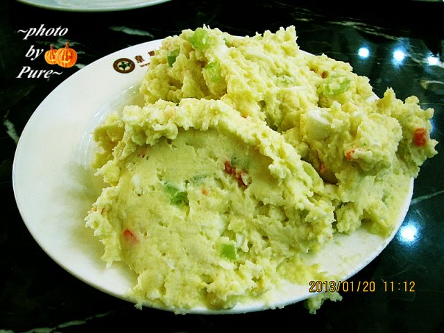 土豆泥的味道不错。不过这东西一吃就饱了。