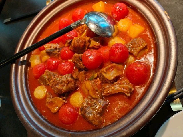 我們幾位老友點了一份698元的四人套餐。跟傳統川菜不同,椿廬是把川菜的經典味型做基底,再融入各地食材與創新技法。比如招牌豆花水煮魚,嫩滑豆花吸滿鮮辣湯汁,魚肉用的是新鮮活魚,入口沒有厚重油膩感,反而多了份清爽;有機番茄煨牛坑腩,番茄的酸甜中和了牛腩的醇厚,每塊肉都燉得軟嫩入味,一完全吃出了川味之外的層次感。