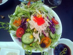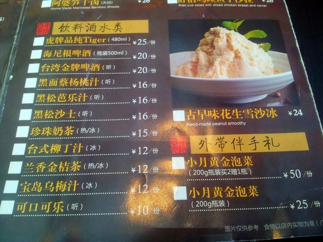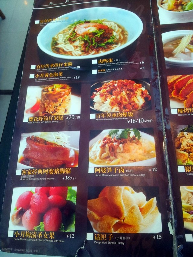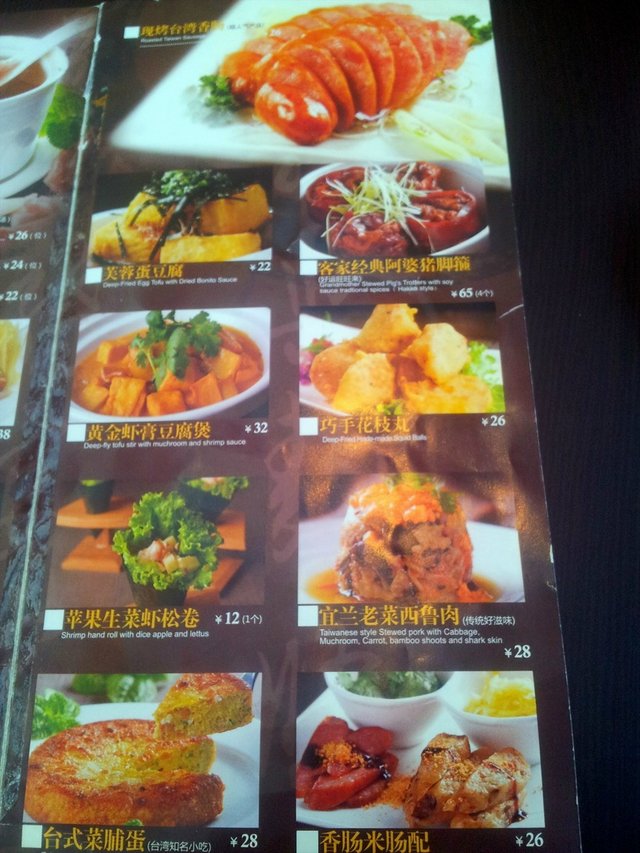 热珍珠奶茶(¥15.00)奶茶味道很浓郁,略有茶淡淡的苦涩味道。热兰香金橘茶(¥12.00)很熟悉的味道,细细回忆,恩……果珍的味道!没错!舒活鸡丝鱼子沙拉(¥26.00)里面的蔬菜怎么那么打蔫儿,一点不水灵,那鱼子很糟糕!完全没有那种颗粒感!巧手花枝丸(¥26.00)五香排骨酥(¥36.00)味道一般,都备有椒盐沾料,但都没留下什么深刻的印象。招牌黄金虾卷(¥36.00)口感是外脆里软,里头除了有虾蓉还有马蹄碎。酱汁微甜,却没芥末味。盛菜的盘子是新型,很有爱!一品胡椒猪肚汤(¥26.00)据说这是台湾客家人从冬至这天开始进补的汤。汤里用整颗当年产黑胡椒下去煮,里面的主料是杏鲍菇和猪肚,还有小排骨,这个味道还不错,猪肚炖的的很烂。虽然汤底胡椒粒不少,但汤中胡椒味并不浓重,我喜欢。百年传承肉燥饭(¥18.00)腌黄瓜甜甜的,肉臊很细腻,又不是很油,对于我这个肉食星人来说,我觉得肉燥有点少哎!但印象中的肉燥饭里应该有半个卤蛋的,蛋呢?!上面应该有个虾的,虾呢?!