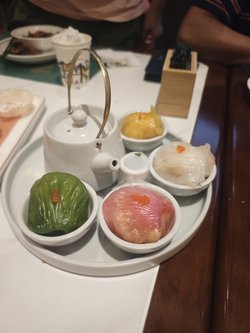 - 金沙海蝦紅米腸:經典茶點的極致演繹!外層紅米腸軟潤彈牙,中間夾著酥脆網皮,內餡是大隻鮮蝦,三層口感層次分明,蘸上花生醬,鹹香鮮甜一口滿足,吃過都話「正」!