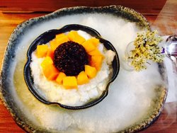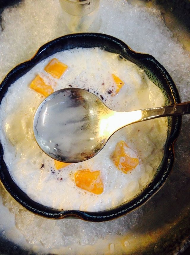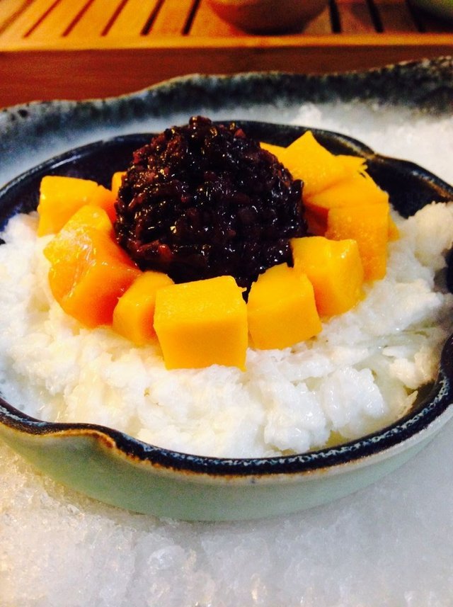 黑糯米,甜而不腻,很Q弹,白雪冰里面混合着椰奶,味道浓郁,芒果就不赘述了。