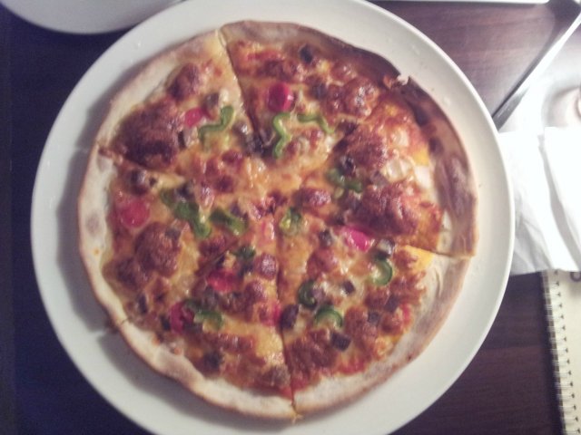 强烈推荐的首选就要属芝士牛肉披萨莫数了,真心是皮薄香脆啊,做为吃货的我一直以来也算是吃过不少家的披萨了,什么季诺、棒约翰、巴贝拉还有米斯特披萨,至于遍地开花的必胜客就更别提了。可我始终没吃出什么名堂,甚至认为我对披萨这种食物恐怕是无法产生热爱了。但吃过她家的披萨,彻底颠覆了我对披萨的观点,真的很好吃,我只是尝了一口便完全停止不下来,甚至长草很久的玛丽奥的蘑菇罐被端上来,我也依旧舍不得放下手里吃了一半的披萨,直到老板善意的提醒我们,玛丽奥的蘑菇罐要趁热吃,以免酥皮变软。我才一边招呼朋友快吃玛丽奥的蘑菇罐,一边仓促的将手中的披萨几口扔进胃。据老板说她家的披萨是纯手工现做的。饼底什么都是现擀的。而且是薄脆的。别家都没有。别的西餐厅都是买的进货速冻的。反正,别人我不知道,至少我是直接拜倒在她家的芝士牛肉披萨的脆饼皮下了。