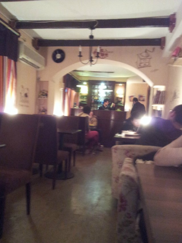 攀上略显狭窄的楼梯,便是一个蛮有情调的小门厅,推门而入,首先迎接你的必定是悠扬低沉的美妙音乐,随入门处右手边是一座小型的舞台,那是晚上九点之后变身清吧,顾客目光所关注的地方。后便是昏黄的灯光、舒适的沙发所打造的一个格调温馨的就餐环境。她家菜单貌似完全是自己DIY的,搭配的照片也完全是手工粘贴的。无论是就餐区内花纹不同的布艺沙发,还是墙上既有装饰作用又兼具实用价值的黑胶唱片时钟,目光所及之处到处都能看到老板的巧妙用心。