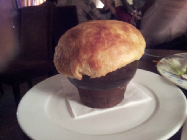 铛~铛~铛~铛~~!!长草很久的玛丽奥的蘑菇罐隆重登场,我选的是咖喱鸡肉的,和朋友你一勺我一勺的吃个不停。尤其是上面的那层酥皮灰常不错。哎呀,我缩玛丽奥的蘑菇罐啊,你还敢跟老板撞发型,你敢在可耐点吗!快,快到我碗里来!