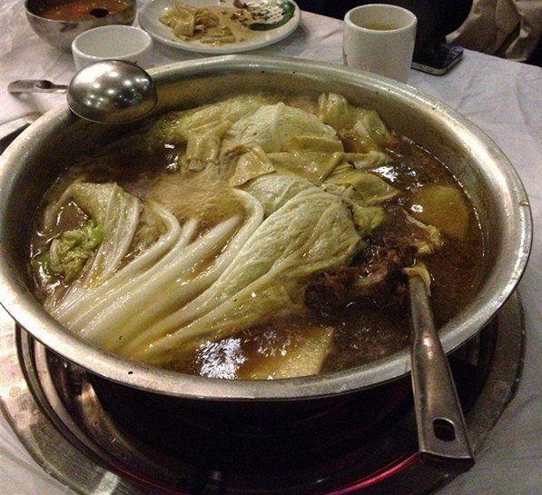 大餐一顿羊蝎子后,点了几个青菜和火锅面,蔬菜在羊蝎子汤底的浸润下,味道更好,几个人风卷残云,吃的一本满足!