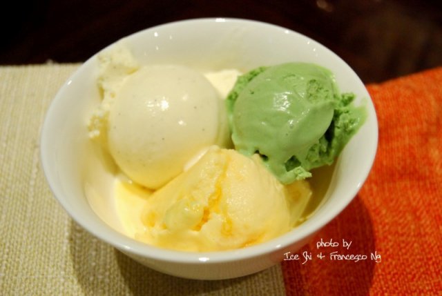 冰淇淋一开始以为没有,后来发现藏在甜品区旁边,都是用盖子盖住的,不仔细看还看不出,有芒果、香草和抹茶3种口味,冰淇淋倒是非常好吃的,口感非常浓郁。。。