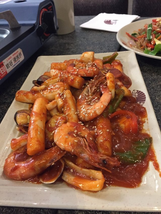 这两道菜是在吃韩料最常吃的一道,他们家的炒年糕里面真的好多海鲜哦,我喜欢里面大块的鱿鱼。