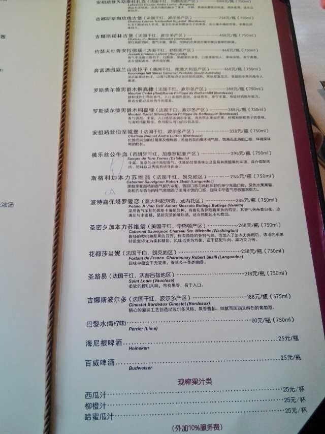 打开菜单,真是霸气,台塑王品牛排套餐318,外加10%的服务费。先不说味道,这价位令人咋舌,我这工薪族实在是消费不起呢。还有各种酒水,好贵的说。。。拍下来给大家参考一下~~~