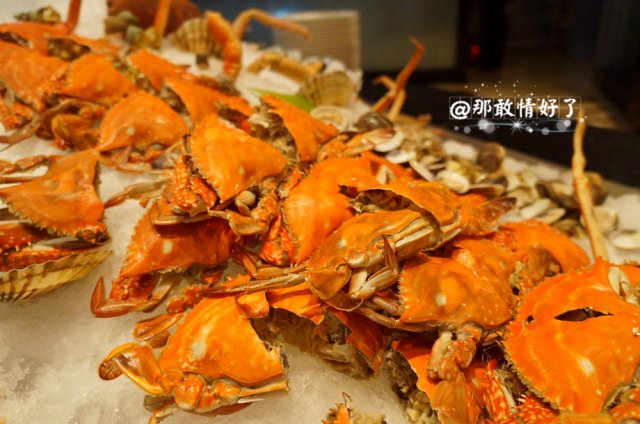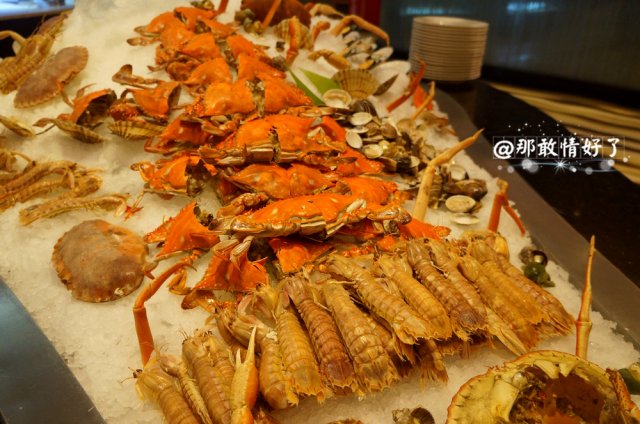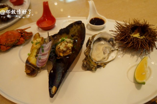 周五、周六晚上的菜品要比中午多,尤其是海鲜。果然,海鲜太多了很多梭子蟹、晚餐还送大闸蟹海鲜拼盘,有大闸蟹一只,生蚝、海胆、带子等,非常壮观的一大盘子。
