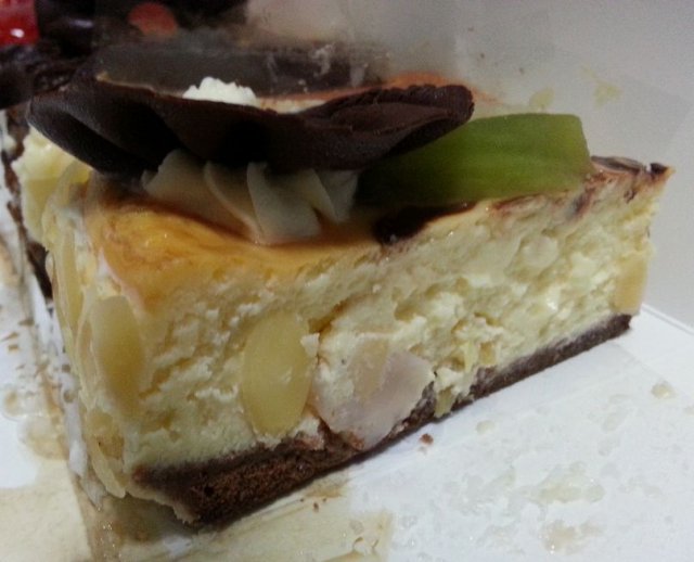 里面加了杏仁核核桃的坚果,吃到口中有股坚果的清香,中和了蛋糕本身的柔软,底下的底是芝士奶酪。不腻人,口感特别的密实紧致,湿度适中。