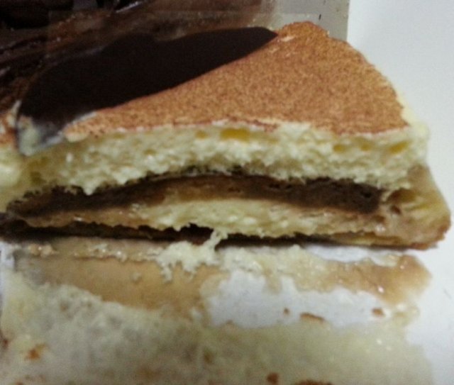 这款提拉米苏属于软身版本的,就是周边没有手指饼干的,里面的层次不多,只有一层咖啡加朗姆酒的层,味道很清新,甜度适中,属于好吃的一级。