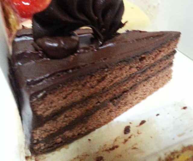 再来是我钟爱的巧克力蛋糕,也是38块钱。他家的巧克力蛋糕很浓郁很浓郁,巧克力的密实度让你觉得这不是在吃蛋糕,而是一整块纯巧克力。里面宜层一层的夹杂了巧克力酱,中和了蛋糕体的单调,口感太赞了,很浓稠的巧克力在舌尖划开。