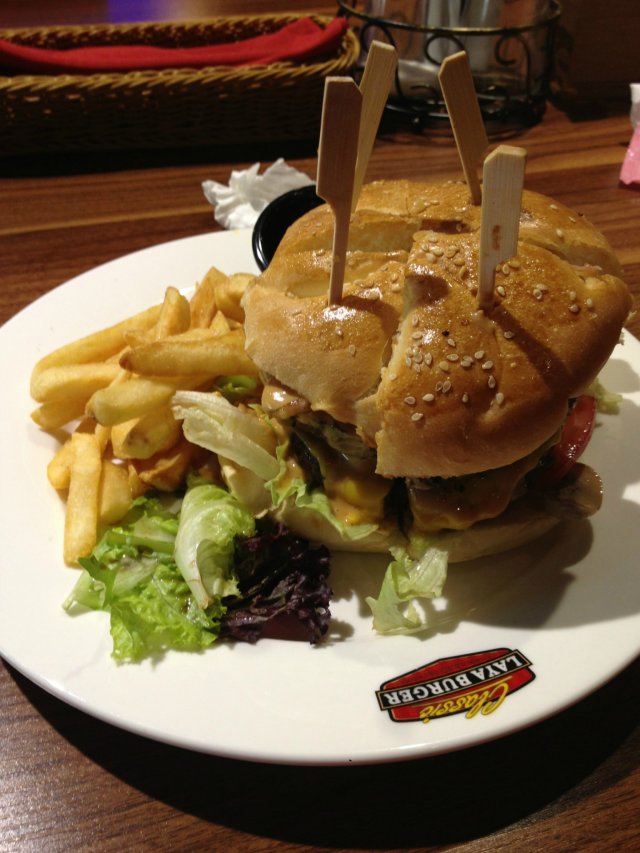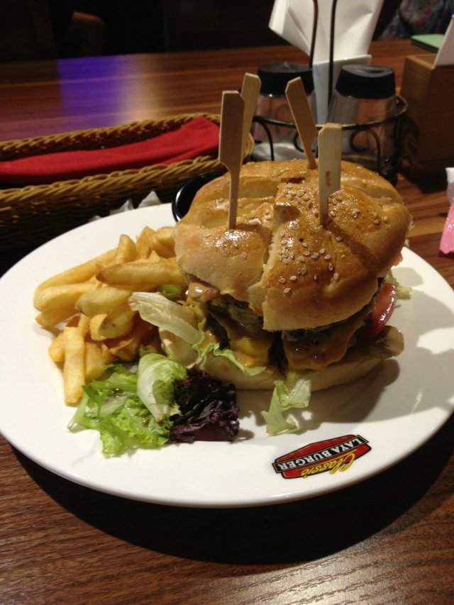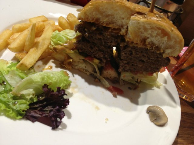 我和姐们俩人~~要了一个75米的 花生双层牛肉汉堡~~~