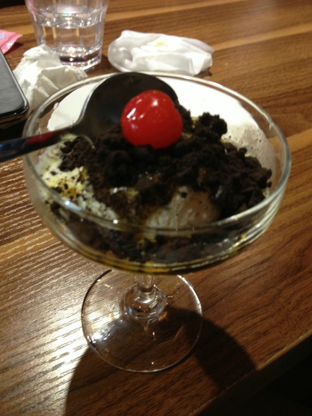 冰淇淋。点评他家送的~~~ 不过让餐后上 吃半截就上了,最后都化了。。。