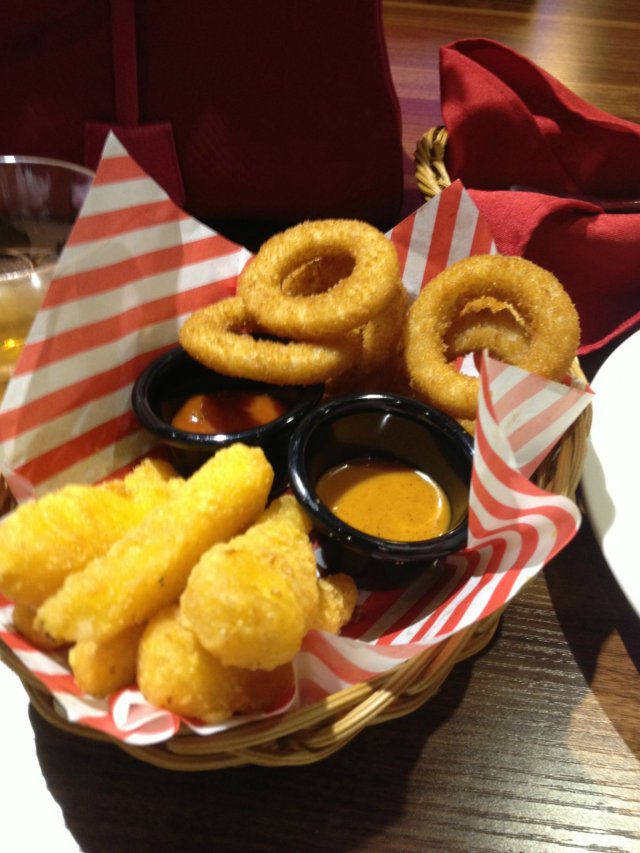 双拼~~洋葱圈和普通洋葱圈差不多。 但是有点不合理的是内个装料的容器。。比洋葱圈直径小好多。只能咬一口再蘸酱。。。。而且我觉得料给的也不对。。。。根本不适合。。。