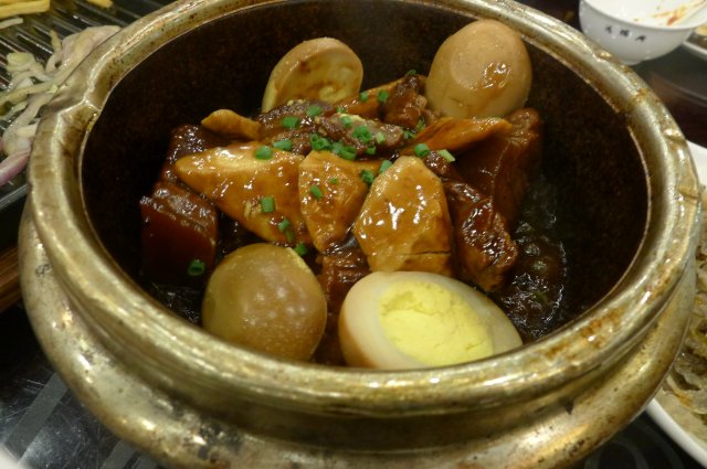 @红烧肉香干/38块,肉啊~大肉~大家看到了都很激动~红烧肉做的不错,很入味,肥瘦相间,虽然我不爱吃肥肉,并且也没有吃肥肉,所以对肥肉部分无法评价,但瘦肉做的还是不错的,不是那种咬不动嚼不烂的,所以我好像还抢了两三块样子,但很快就没有了,只剩下了香干在里面默默的躺着。。。不是我们抢的速度太快,而是他量太少了。。。