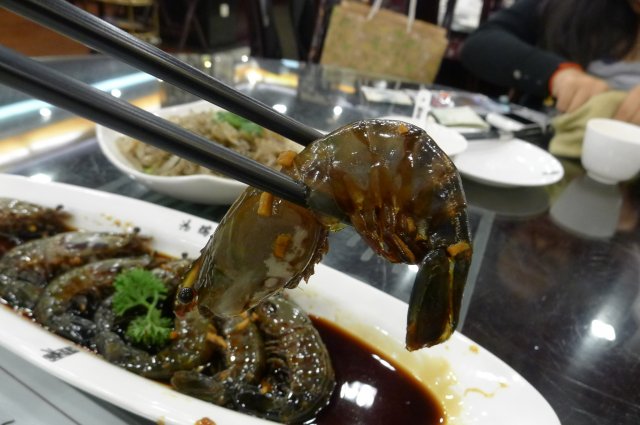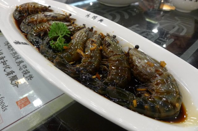 @鸿瑞兴特色虾/48块,俗称话梅虾,这个虾就是他们家的招牌菜,我好像在其他的本帮饭店里面不常见到。做法就是醉虾的一种,也就是生的虾在酒里面淹死,呛出来的~感觉说出来有点残忍哦。。。但我还蛮喜欢吃醉虾的,很小的时候不懂吃过一次觉得蛮好吃的,但长大后就一直没怎么吃到过。这里的醉虾跟其他地方不一样的就是里面有话梅的酸酸甜甜的味道,非常不错,虾肉跟酱汁搭配的非常完美,不会有那种虾的腥味。虾的个头也不小,但是数量少啊。。。才8个。。。一个人就只能吃两个~~~