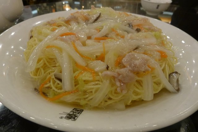 @三丝两面黄/20块,因为另外某两人都说没吃过两面黄。。。好吧。。。那就来一份。。。上面的浇头有三丝和鳝丝两种,但是一听鳝丝的贵就没要,其实吃下来感觉这个两面黄应该还是配一个重口味的浇头会比较好吃啦。刚上来的时候那个面条很脆的,伴着滚烫的三丝感觉还是可以的。但吃到后面发现面条都软掉了,三丝也冷掉了,就不是很好吃的,因为这样就完全突显不出两面黄的特色了,还是像干脆面口感会比较好吃啦