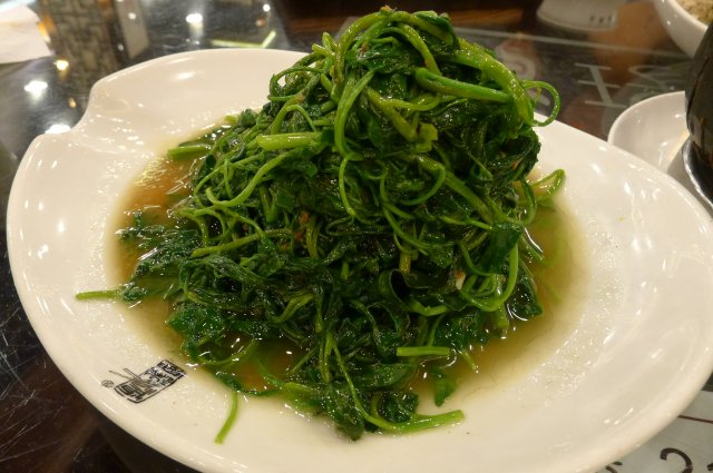 @虾酱空心菜/23块,怎么样也要搞个绿色蔬菜吧,否则全是肉也不太平衡哦。这个空心菜跟我在夏天吃到的感觉不太一样么,因为它杠子好细哦,叶子也不是很肥厚的那种,总觉得有点像鸡毛菜了。但不管是什么样子的菜,味道还是很不错的,虾酱虽然不是本帮菜的特色,但我们吃的还是很欢快,说明他这里做的还不错啦