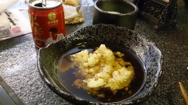 啊这里要提一下调料,不造为啥我一直不太喜欢香油料,芝麻酱比较喜欢,这家的调料是花生芝麻酱,我觉得还挺香的。油料是很多蒜泥呢,看起来就略辣,然后一个小易拉罐里装的香油,像加多宝的感觉哈哈。